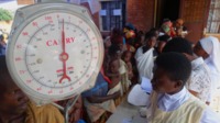 „Ihre Tochter braucht dringend kräftigende Nahrung”, sagt Schwester Beatrice zur Mutter. Ihre Kollegin notiert: Oberarmumfang: 103 mm. Das zwölf Monate alte Mädchen wiegt nur 4,3 kg. Schwester Beatrice weiß, gesunde Kinder wiegen in diesem Alter doppelt so viel. Unter den Namen des Kindes schreibt sie: malnutrition: trés sévère, sehr schwere Unterernährung.