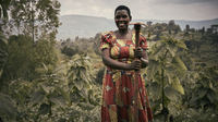 Ihre kleine Tochter im Tragetuch auf den Rücken gebunden, marschiert Nadia Niyongabo vorbei an üppig grünen Palmen. Erst über schmale Pfade, dann entlang der asphaltierten Hauptstraße. Der Frühnebel liegt noch über den Hügeln und vermischt sich mit dem Rauch der Kochstellen. Nach knapp zwei Stunden ist sie an ihrem Ziel angekommen.