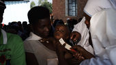 Unerbittlich packt Schwester Beatrice den Arm noch fester, zieht die Schlinge noch enger. Ein rascher Ruck, das Plastik drückt Striemen in die Haut. Die kleinen Finger krallen sich in den Hals der Mutter. Aus Wimmern wird lautes Weinen. Mit einem fingerbreiten Plastikband vermisst die Schwester den Oberarm des Kleinkindes.