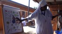 Schwester Beatrice hat gerade mit ihrem Vortrag begonnen. Sie zeigt den versammelten Müttern, wie sie mit den vorhandenen Lebensmitteln ihre Kinder und sich selbst gut versorgen können.