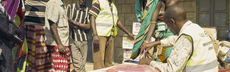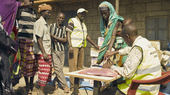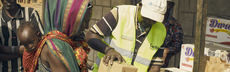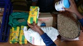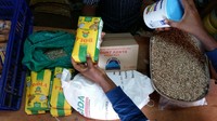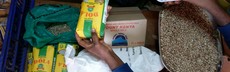 "Das sind 21 Portionen Milchpulver", erklärt Johns Kollege während er ein Paket in den Sack packt.