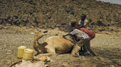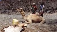 "Wir waren den ganzen Tag unterwegs, um Wasser zu holen", erzählen die Hirten. "Jetzt kann das Kamel nicht mehr weiter. Es will nicht mehr aufstehen."