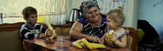 Daryna, Andriy, Alina & KaterynaDarynas TräumeKateryna lebt mit ihren drei Kindern, Daryna, Andriy und Alina in einem Dorf mitten in der Pufferzone. Zwischen Kälte, Kämpfen und Krankheit versucht die Mutter alles Mögliche, um ihren Kindern Momente unbeschwerter Kindheit zu bieten.